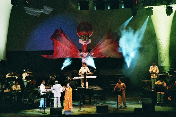 With Lata Mangeshkar 's charity foundation, for her hospital. Pune , concert was very special. i remember when Didi, and Rahman sat in her room the evening of the concert , the entire energy in the room was magical. two living legends wow, could not ask for more. sweet pictures were taken i will try and post some of them have asked the office to dig them out. DG